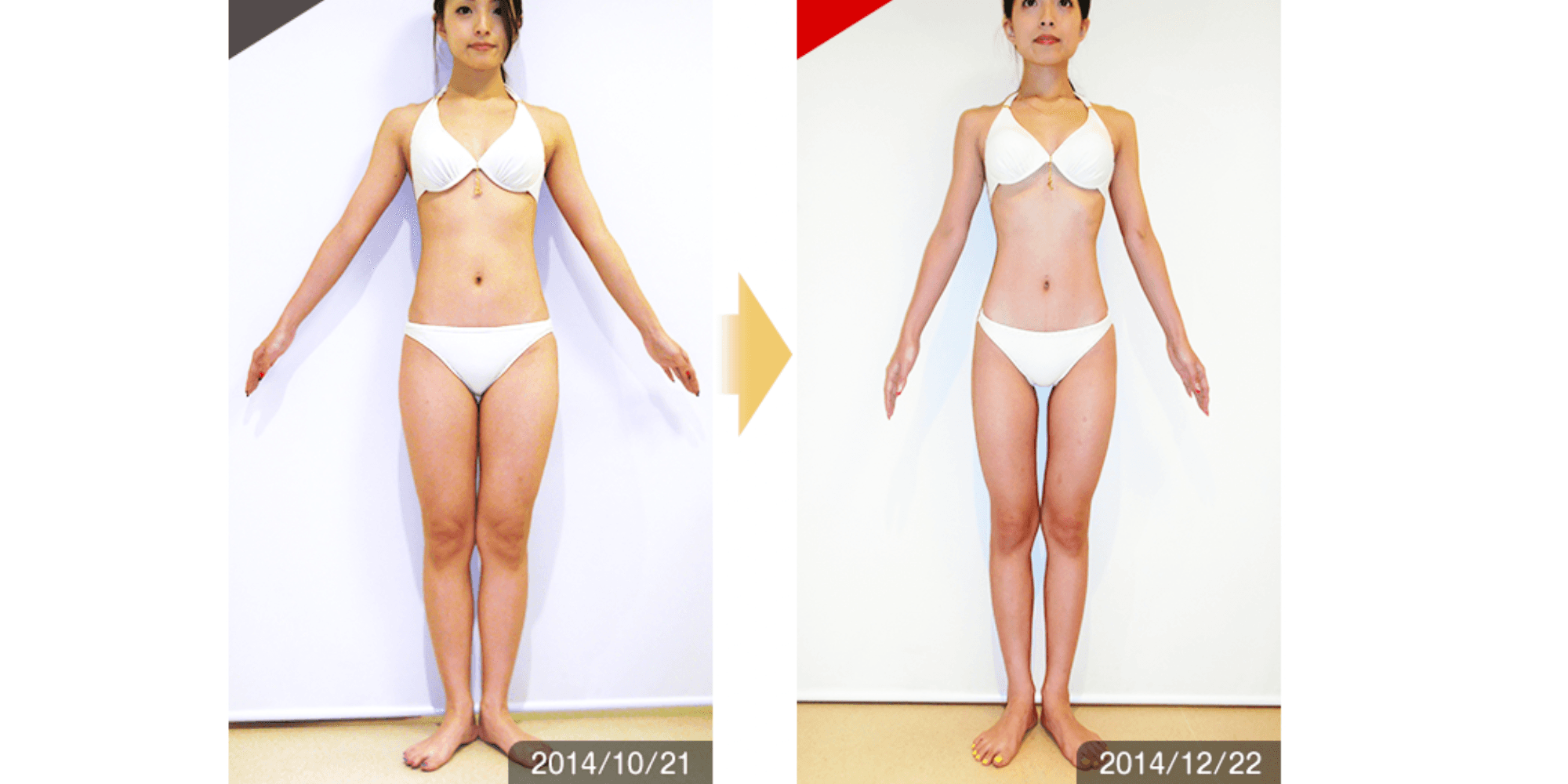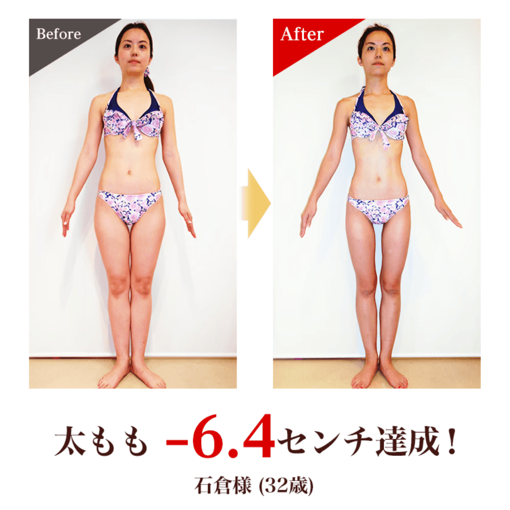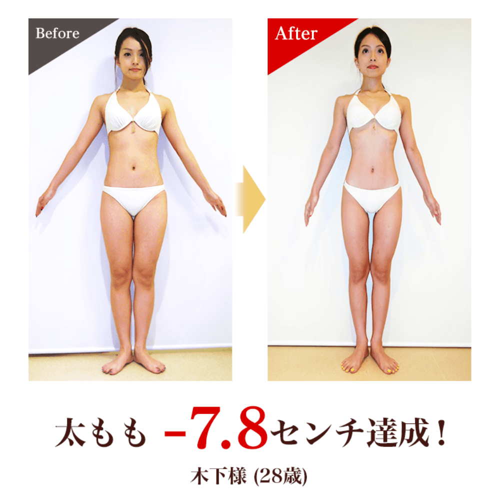本当に細くなるのかな?と、初めは思っていましたが、日に日に変わっていく自分の脚を見て、ここに決めて良かったなと思いました。セルライトのボコボコも気にならなくなりました。